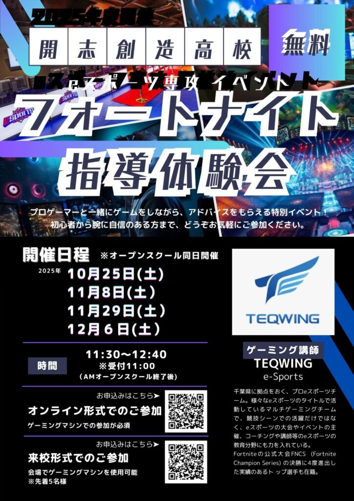 来校参加:お申込みはコチラ ⇒【開志創造高校】フォートナイト指導体験会<対面>