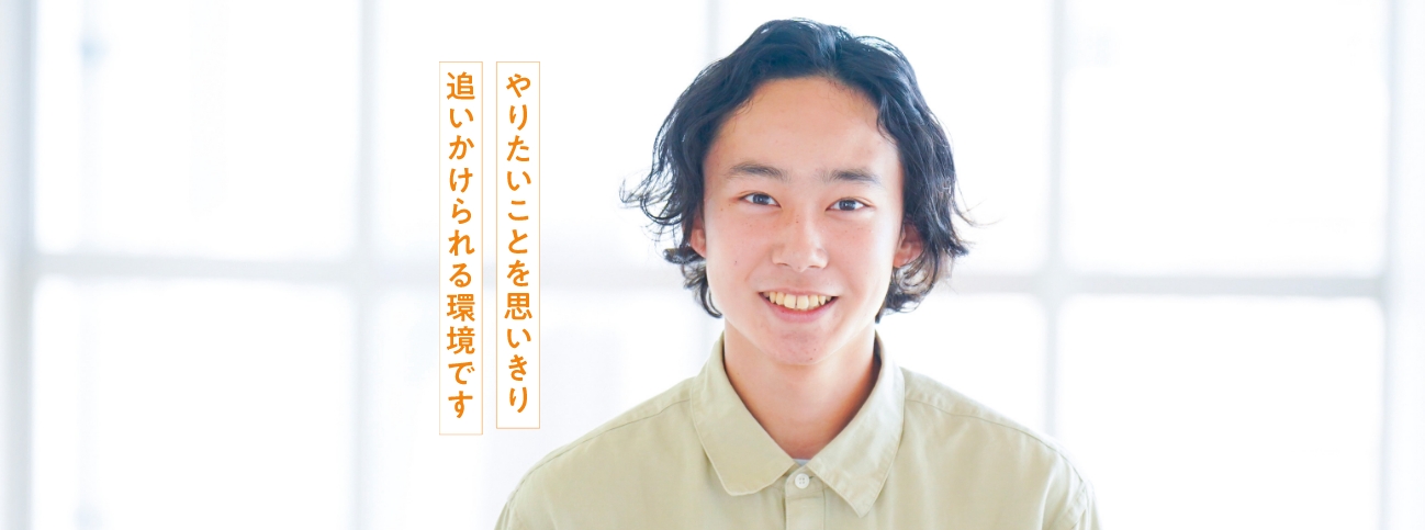 僕は、三条市の「カルチャースケートボードパーク」でライダーとして活動しています。もっと練習時間を増やしたいと思ったとき、この高校なら授業もテストもオンラインで完結できるため、自分のやりたいことにしっかり時間を使えると感じました。現在は、午前中に自習室で集中して勉強し、午後は近くのパークで練習する充実した毎日を送っています。自分のペースで学びながら夢に向かって努力できるこの環境は、僕にぴったりなので、これからも挑戦を続けていきたいと思います。